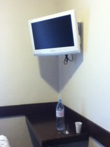 Ma douche c’était plutôt la douche type camping, tu vois. Y avait bien une télé mais ça ne fonctionnait pas.