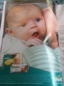 Oeil qui s’est ouvert en grand en voyant une publicité pour des couches portant cette phrase :