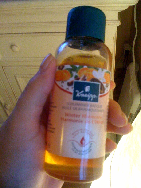 Pour préparer l’hiver, j’ai trouvé une huile de bain qui sent bon le marché de Noël et le vin chaud.